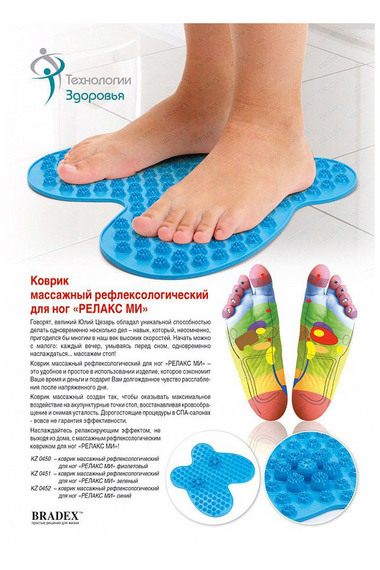 Коврик массажный рефлексологический для ног «РЕЛАКС МИ» синий Bradex