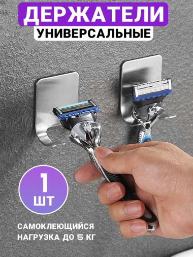 Фото товара 24107, держатель-крючок для бритвенного станка самоклеящийся, 1 шт, серебристые